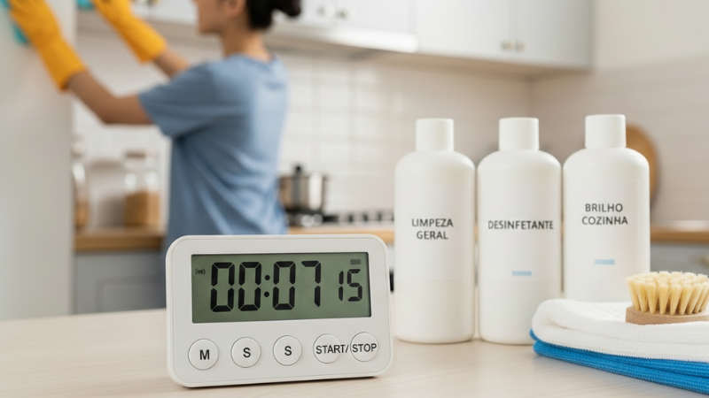 Trabalhar por blocos de tempo, usando um cronômetro simples, também ajuda a manter o foco e evita que a limpeza se estenda indefinidamente. Você começa, cumpre o que precisa ser feito e encerra aquele período com consciência tranquila.